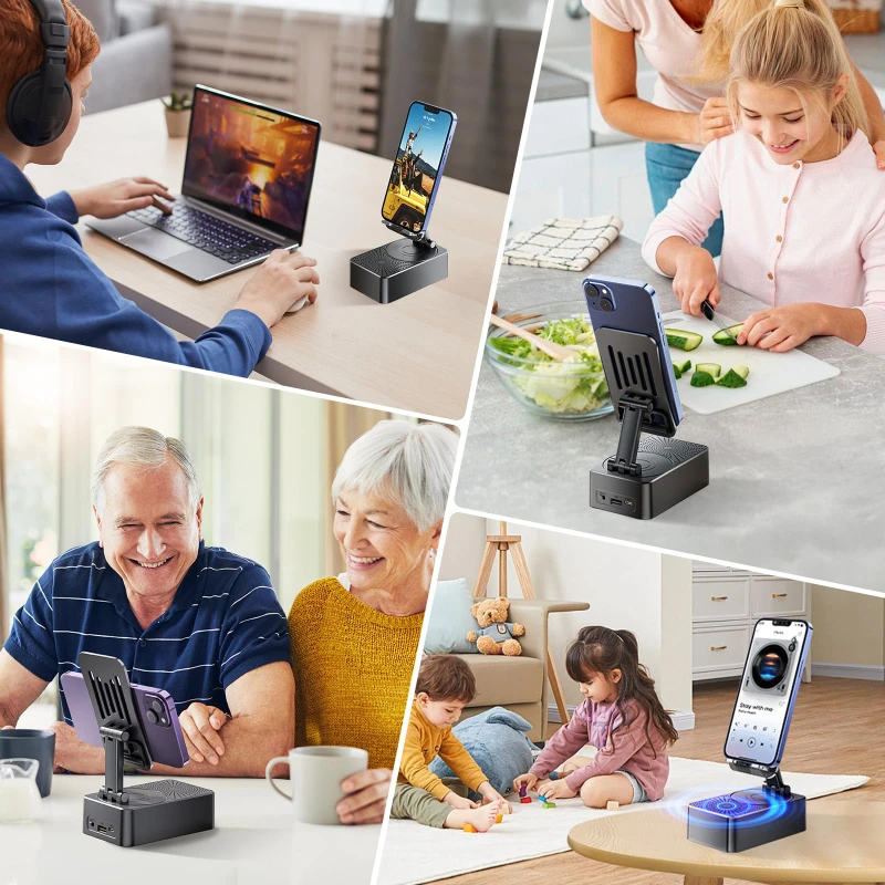 I bought this mainly for my home office setup, but now I use it everywhere. It holds my phone at the perfect viewing angle for Zoom calls, charges while I work, and the speaker quality surprised me. It fills the room without distortion. Setup took less than a minute. Super impressed with the quality.