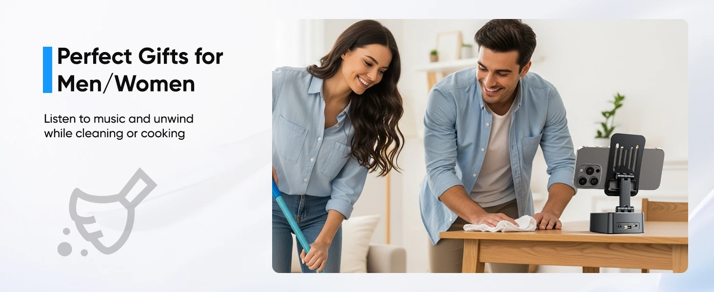 This replaced my old stand and Bluetooth speaker — the combo is perfect. Quality build, clean design, and it keeps my phone powered through the day.